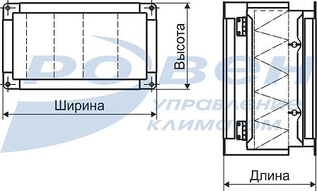 Корпус для фильтра изготавливается из оцинкованной стали. Крышка крепится к корпусу гайкой барашковой оцинкованной и петлями, что позволяет удобно и быстро менять кассету фильтра. Корпус снабжен шинорейкой для присоединения воздуховодов или компонентов вентиляционной системы.