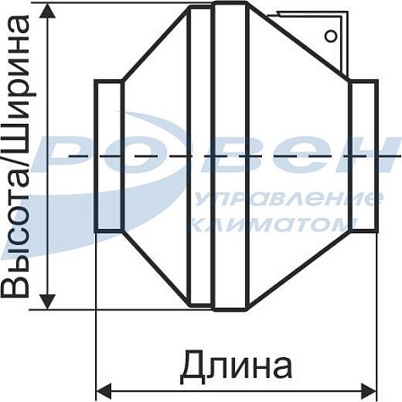 Габаритные и присоединительные размеры канальных вентиляторов серии VCZpl-100 (мм)